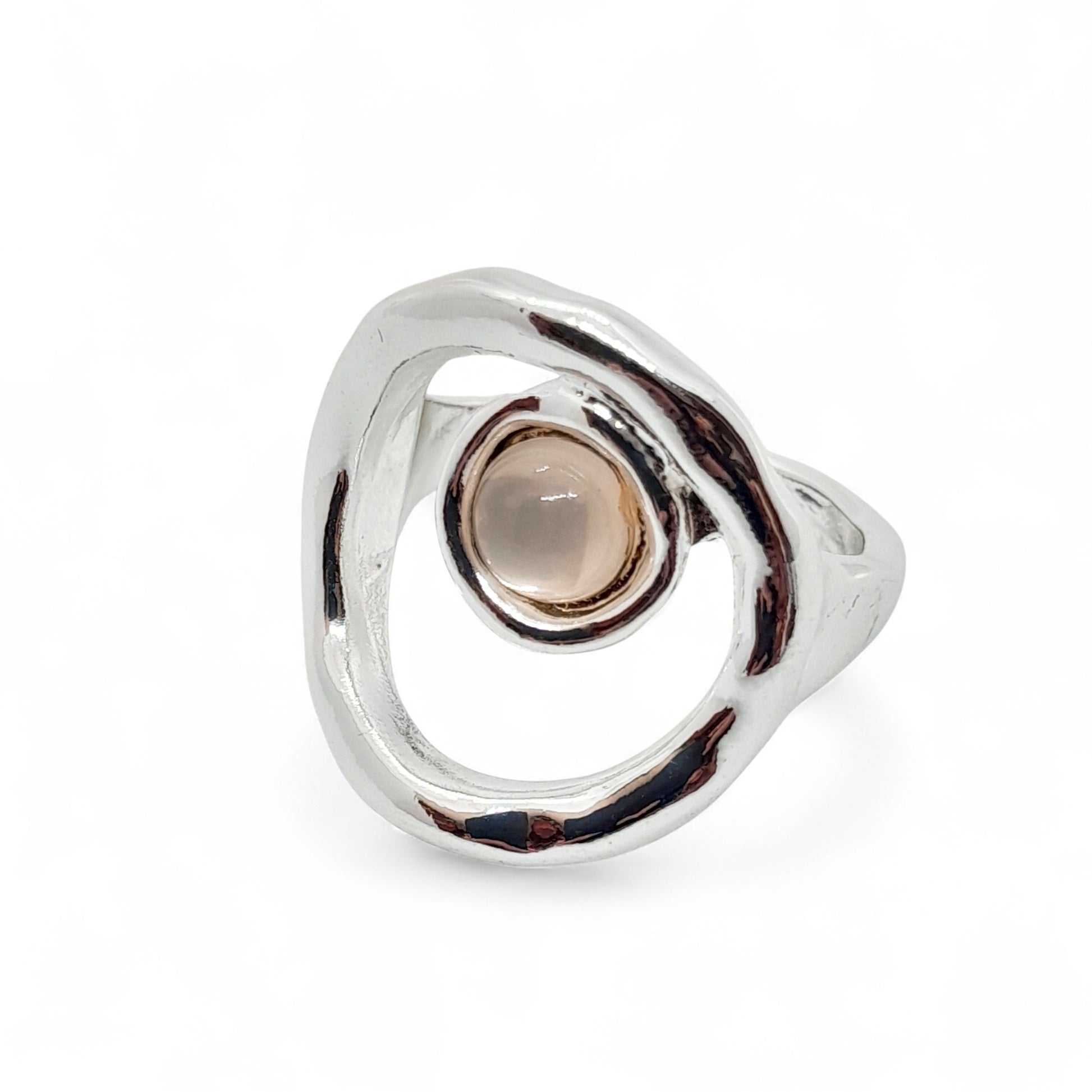 Esta joya contemporánea en tono plateado con detalle de argolla y piedra como elemento central.