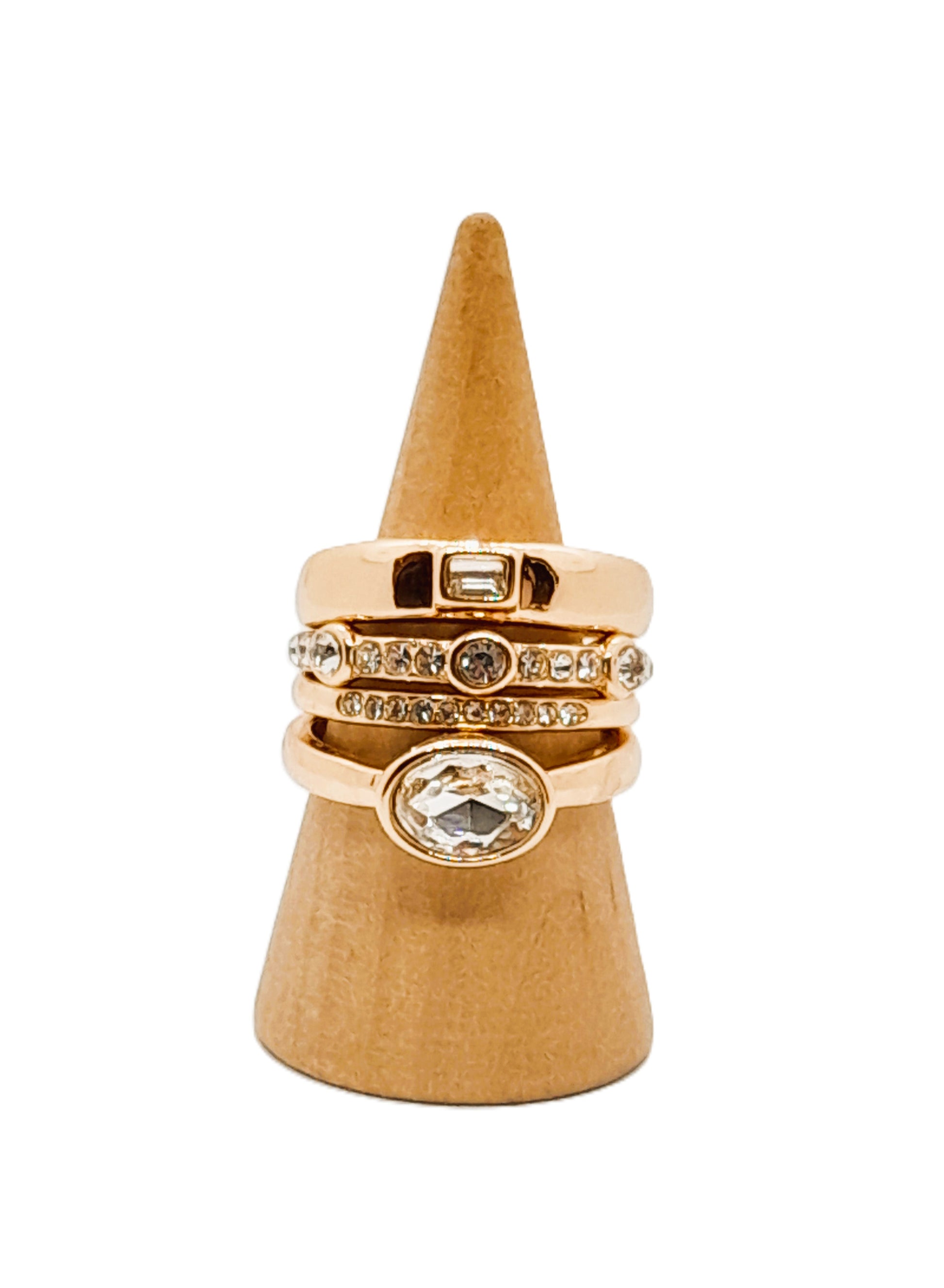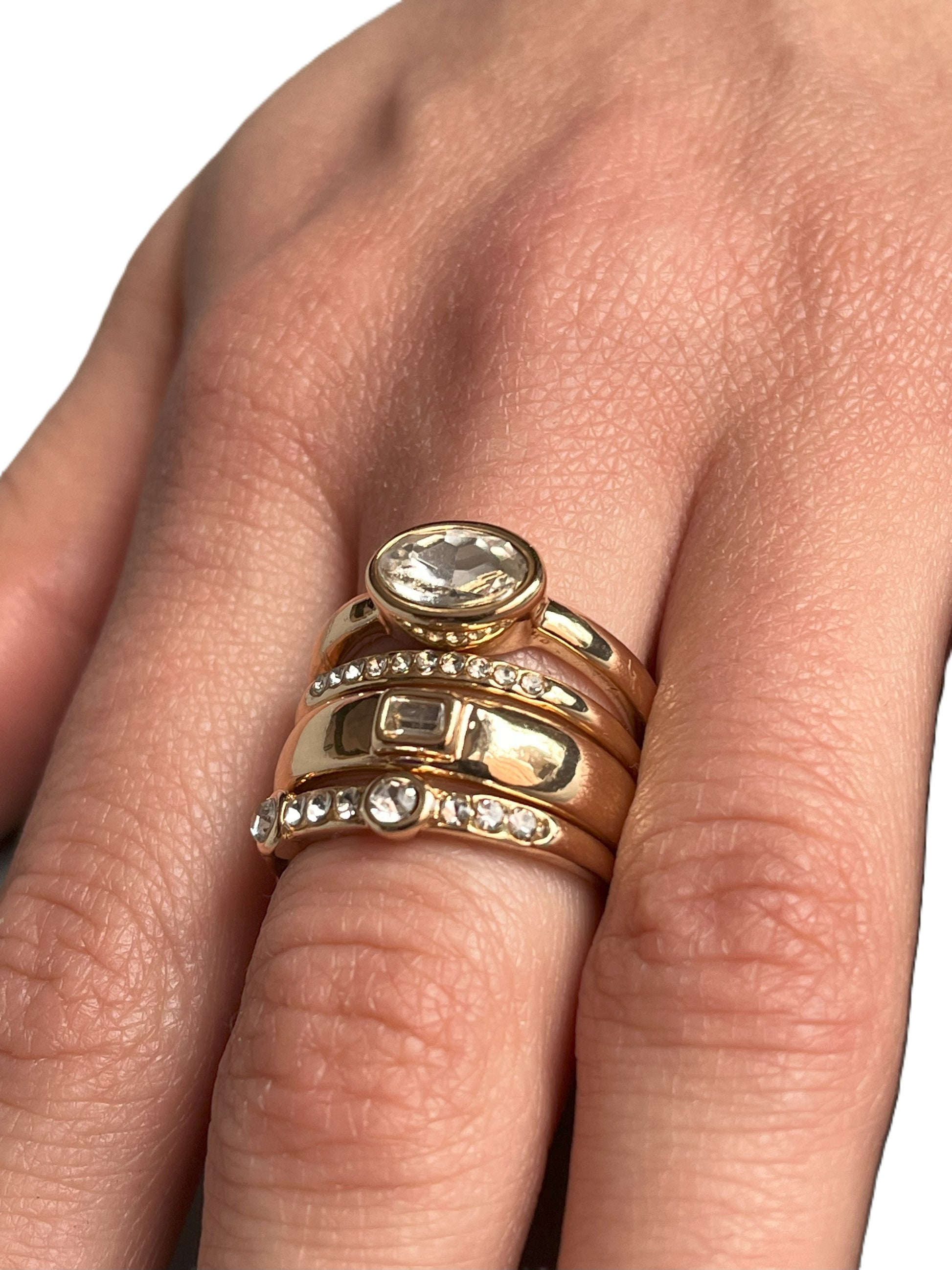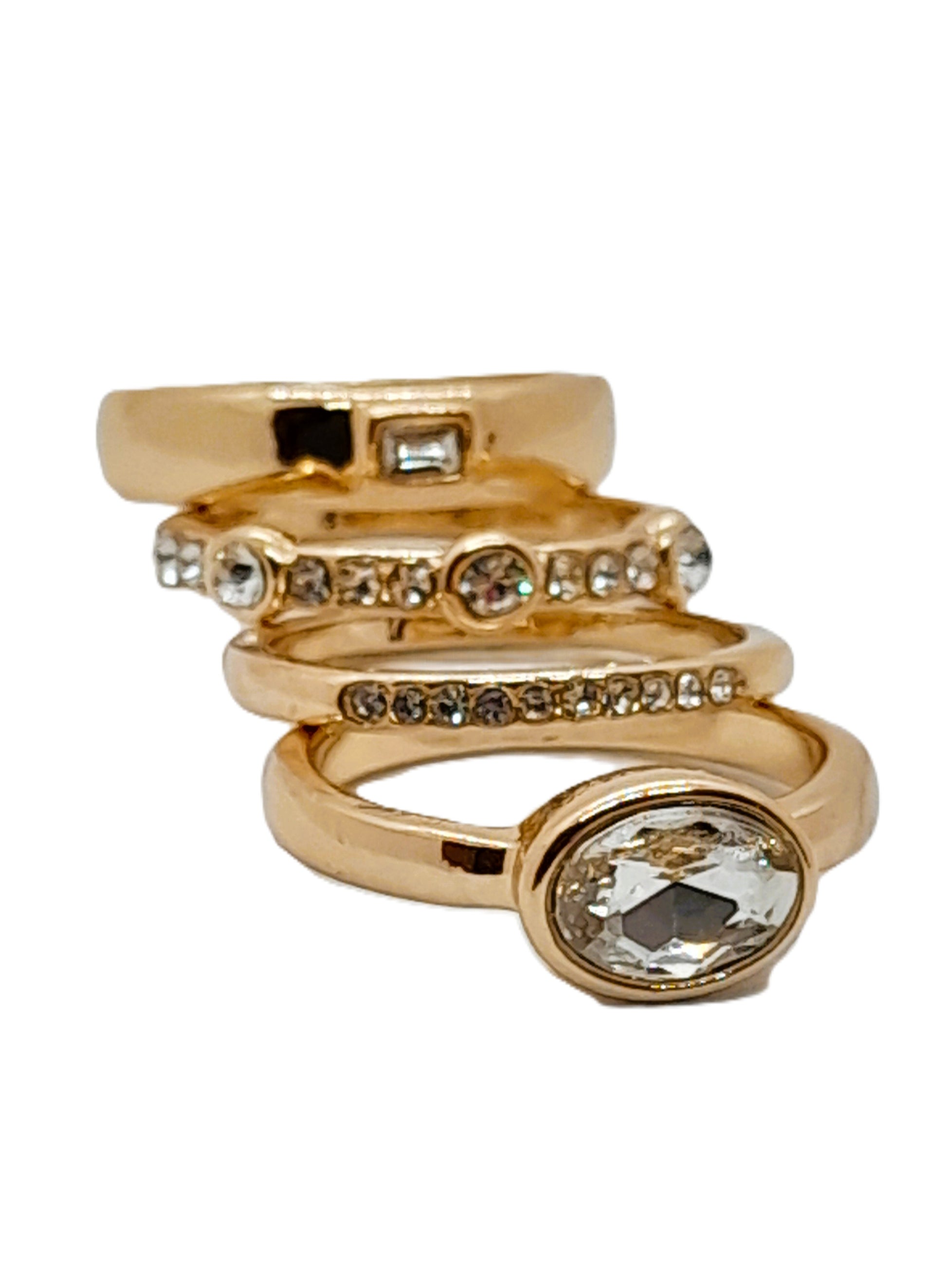 Eleva tu estilo con el conjunto de cuatro anillos Cuarteto de Luz en tono dorado, adornados con brillantes circonitas que aportan un brillo sutil y sofisticado. Perfectos para resaltar cualquier look, estos anillos únicos te permiten expresar tu elegancia y confianza en cada ocasión. Disponibles en talla 7.