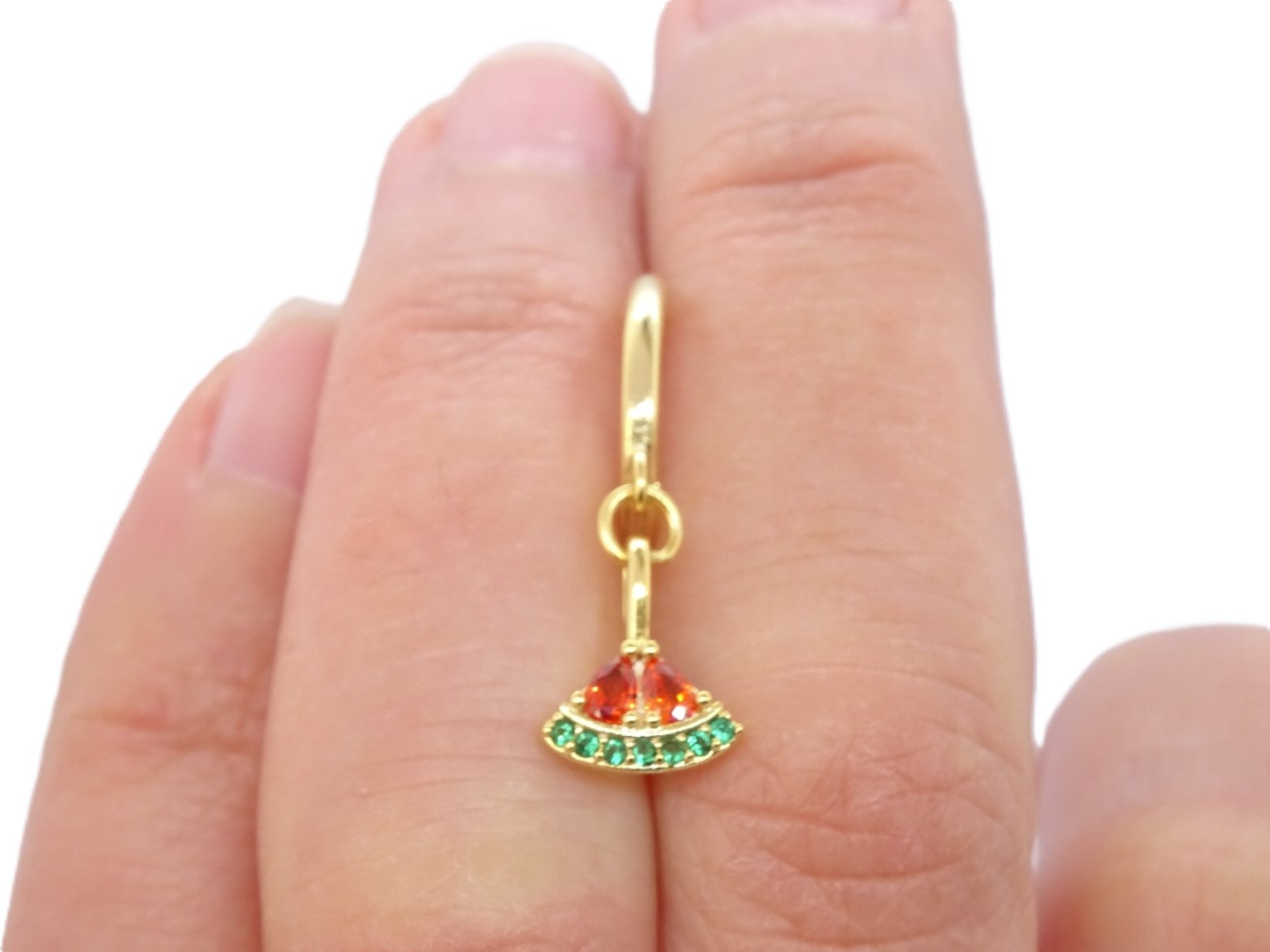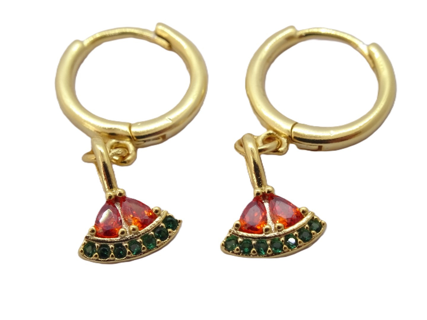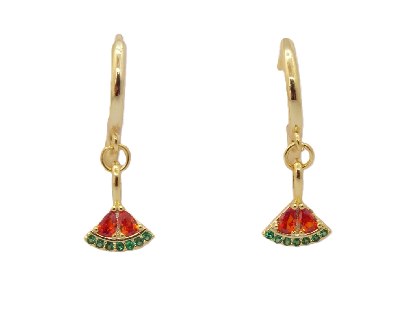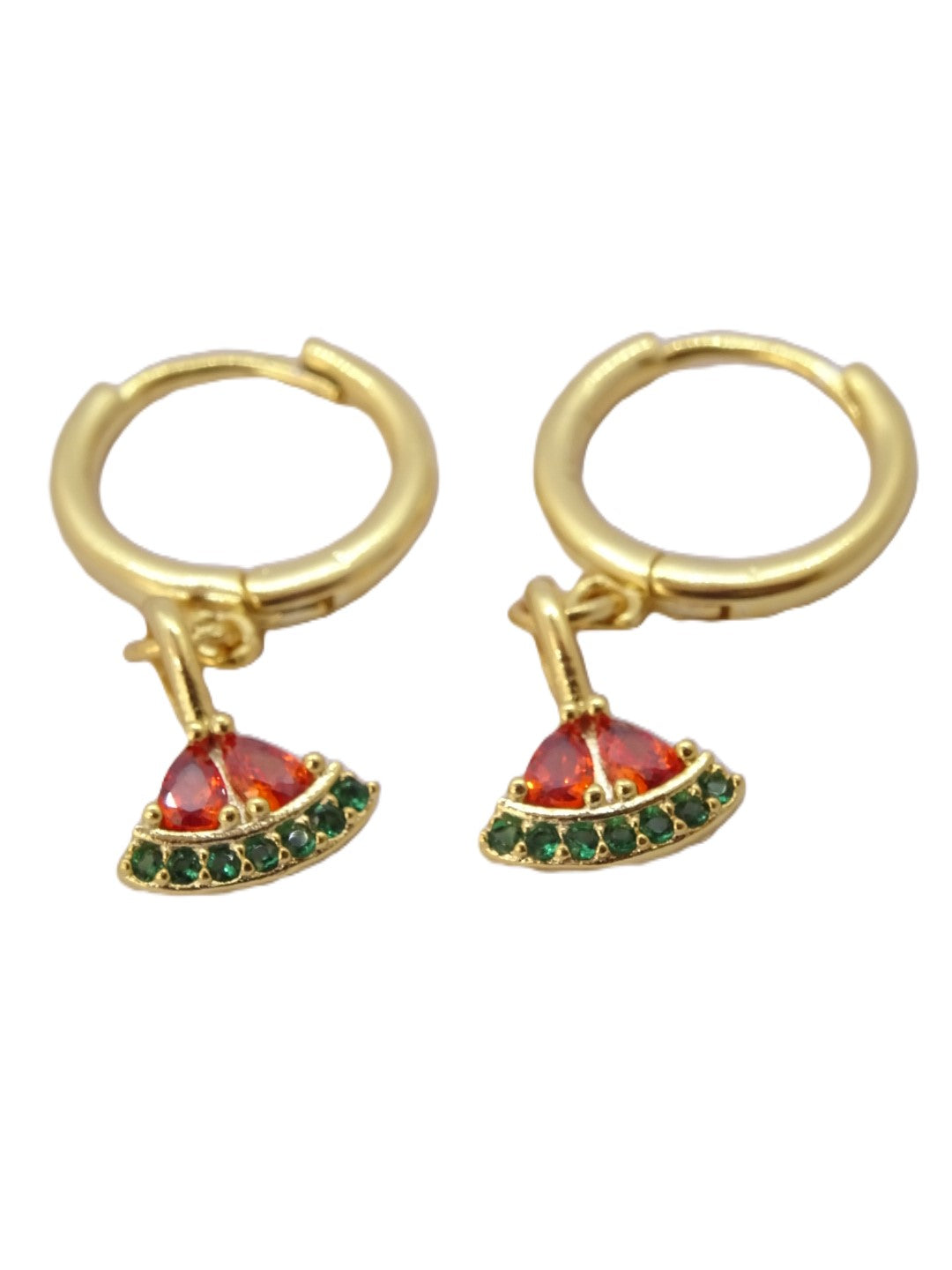 Estos aros presentan un impresionante acabado en baño de oro y un divertido y delicado diseño de sandía, que añade un toque de color a cualquier look.