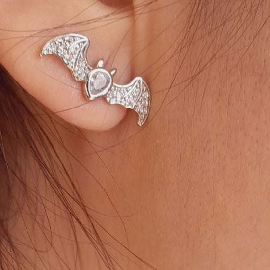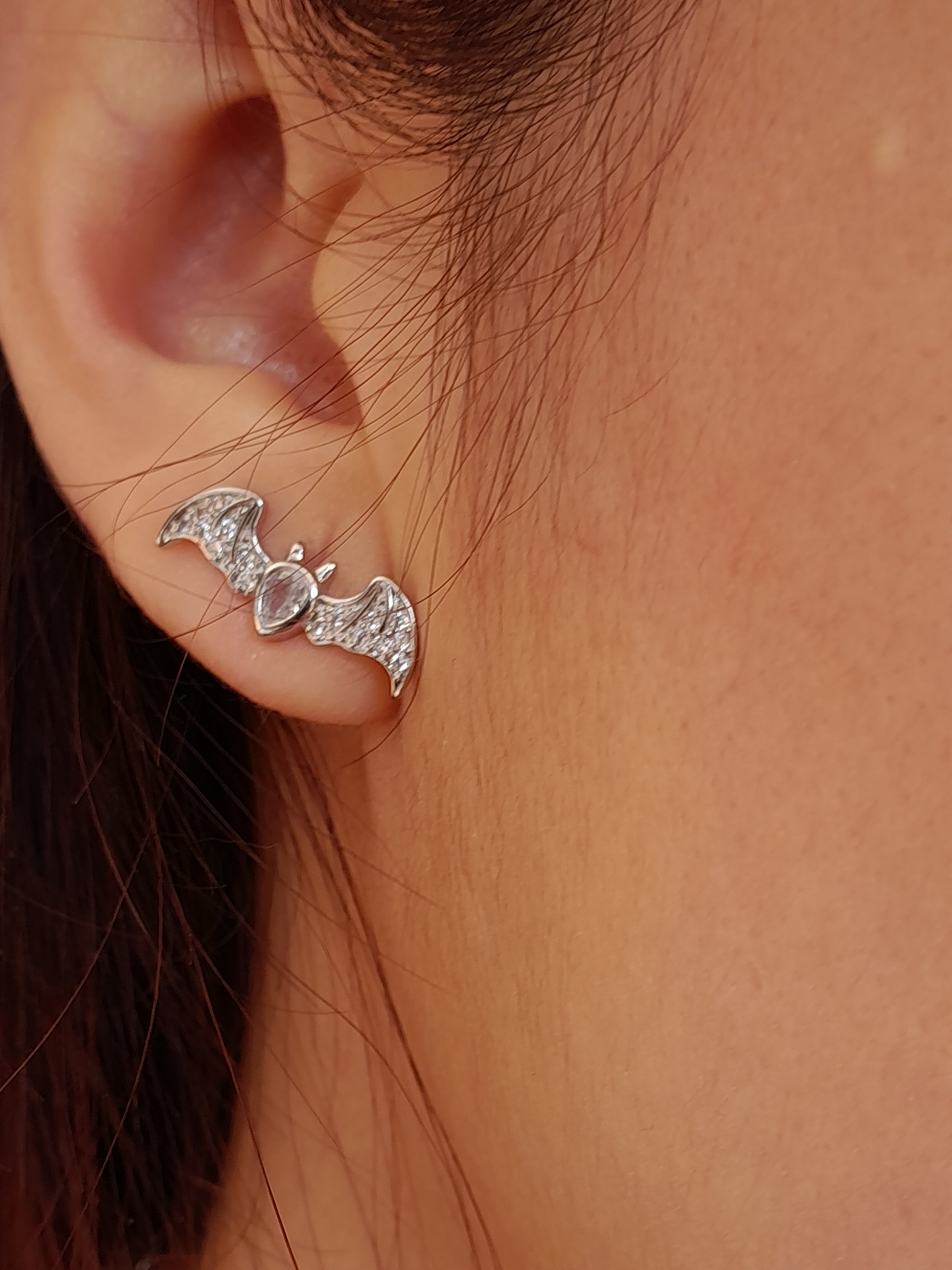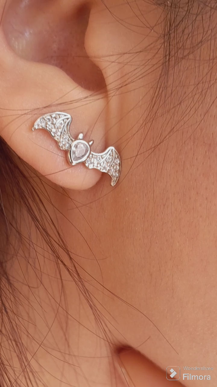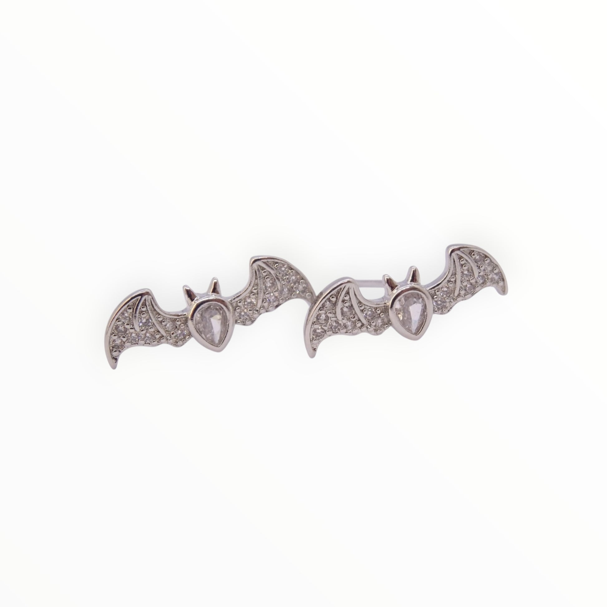 Transforma tu look con nuestros aros con forma de murciélago. Estos pendientes con baño de plata cuentan con una bella circonita en el centro, un diseño original de murciélago. Perfecto para cualquier entusiasta de los murciélagos o para cualquiera que busque un accesorio diferente, elegante y vanguardista.